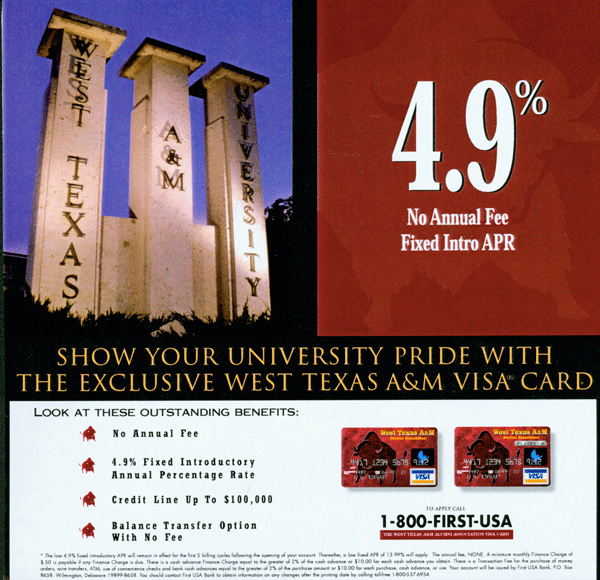 I was a graphic designer for MBNA and First USA and created advertisements, credit card designs and print collateral for both using Adobe Illustrator, Adobe Photoshop and Quark Xpress.