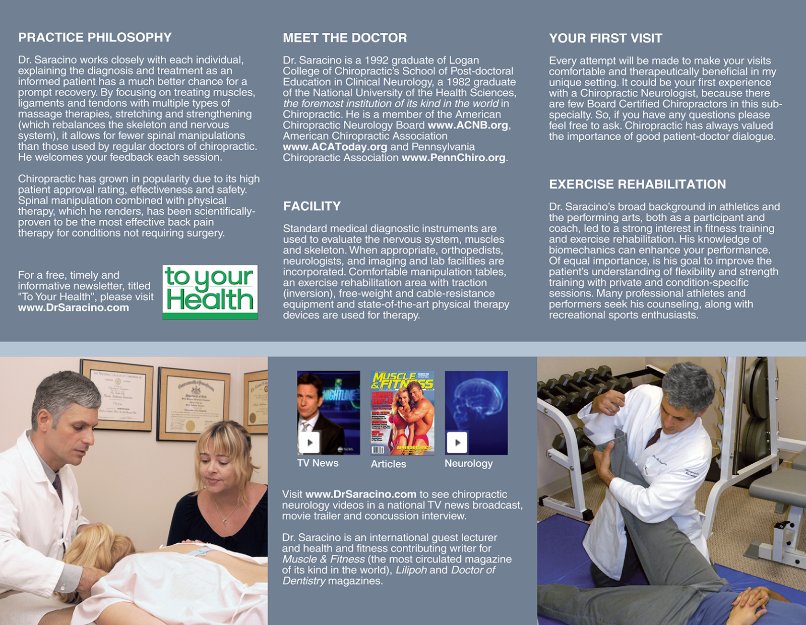 I designed this brochure for a renowned chiropractor in the Philadelphia area using Adobe Indesign, Adobe Illustrator and Adobe Photoshop. Dr. Saracino had requested that I add more gray to his hair in all of the photos to more closely resemble how his hair looked at the time he was releasing his new brochure.